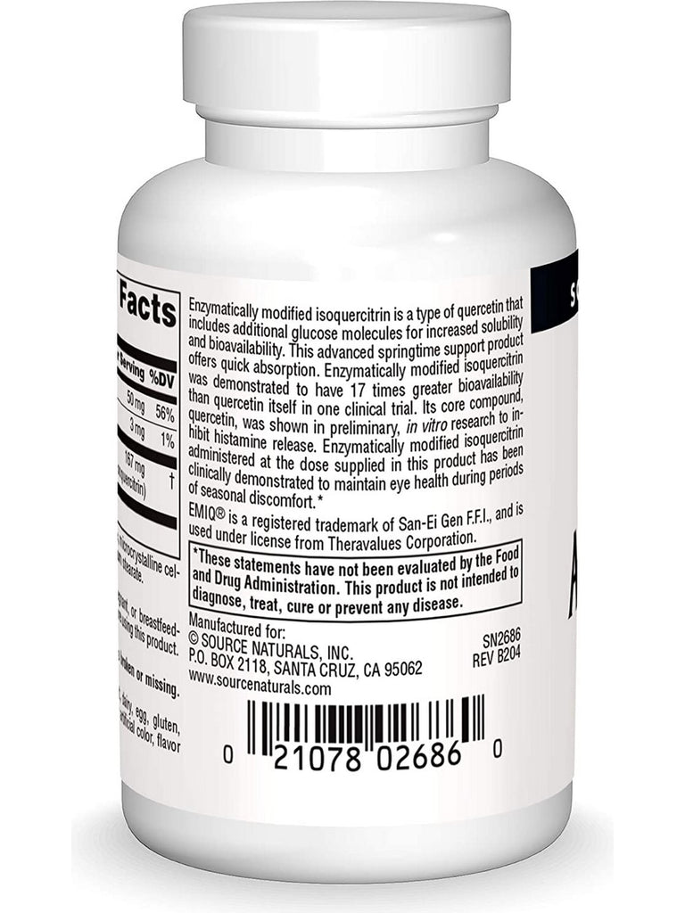 Enzymatically modified isoquercitrin is a type of quercetin that includes additional glucose molecules for increased solubility and bioavailability. This advanced springtime support product offers quick absorption. Enzymatically modified isoquercitrin was demonstrated to have 17 times greater bioavailability than quercetin itself in one clinical trial. Its core compound, quercetin, was shown in preliminary, in vitro research to inhibit histamine release. Enzymatically modified isoquercitrin administered at the dose supplied in this product has been clinically demonstrated to maintain eye health during periods of seasonal discomfort.