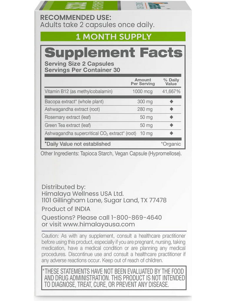 Discover the cognitive strength of Ashwagandha + Focus to help support your memory and concentration. Himalaya combines the adaptogenic power of Ashwagandha with Bacopa, Rosemary and Green Tea Extract to help you focus and help support your clarity of thought and recall.