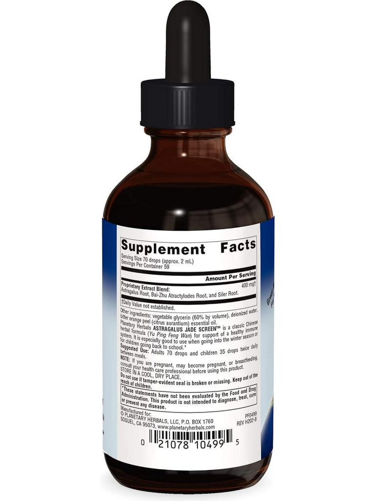 Planetary Herbals Astragalus Jade Screen is a classic Chinese herbal formula (Yu Ping Feng Wan), for support of a healthy immune system. It is especially good to use when going into the winter season or for children going back to school.