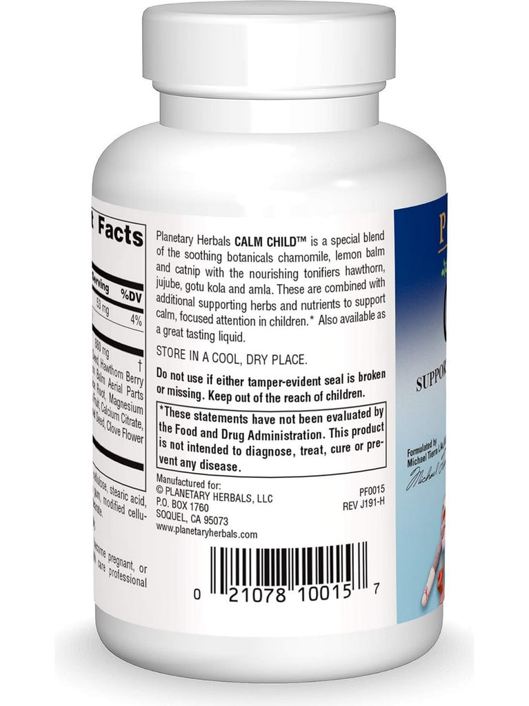 Calm Child is available as a tablet and a great-tasting, alcohol-free liquid. Calm Child is part of the Planetary Herbals line of products that draw on the wisdom of traditional cultures and the new knowledge gleaned from scientific research--providing the best of what modern herbalism and science have to offer.