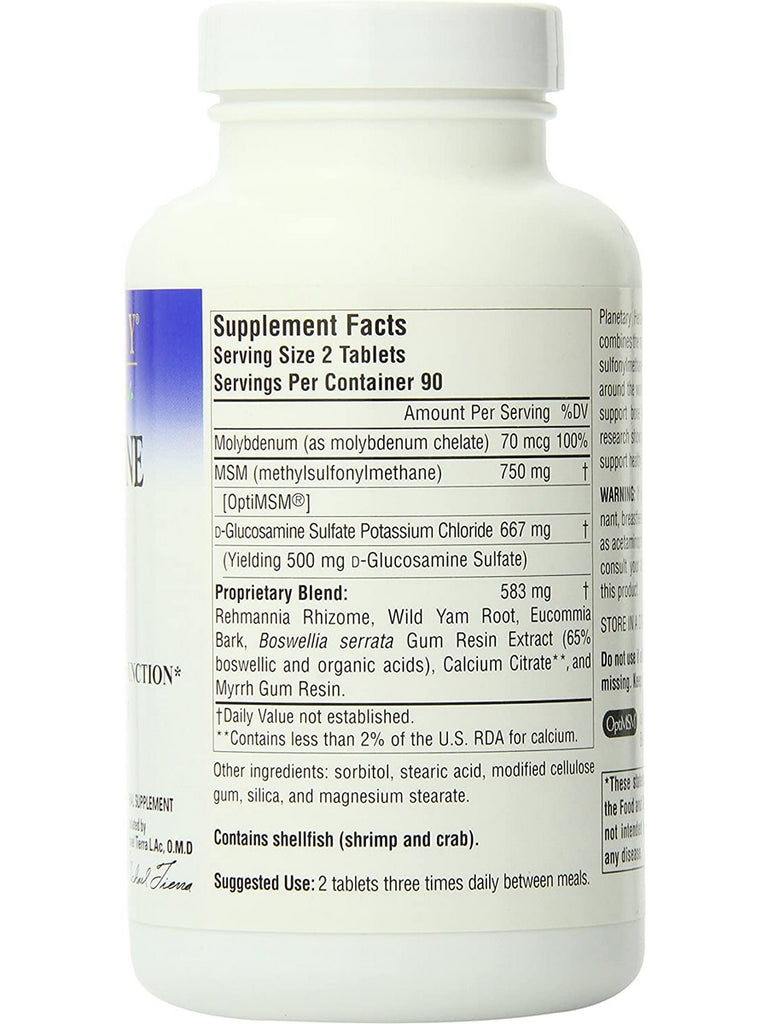 Planetary Herbals Glucosamine MSM Herbal™ combines the nutrients D-glucosamine sulfate, methylsulfonylmethane and molybdenum with herbs from around the world that have been traditionally used to support bone and joint function. Recent scientific research shows that glucosamine and MSM can help support healthy connective tissue and joint function.