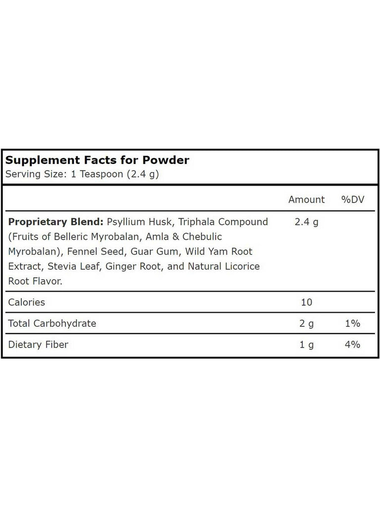Tri-Cleanse combines a unique blend of fibers and herbs with the legendary Triphala compound of India. As the fibers swell and moisten, promoting complete and efficient cleansing, the Triphala compound gently tones, adding strength to the eliminative tract. Simultaneously, the digestive aids ginger, anise, and wild yam, support the "digestive fire", preventing the gas and bloating that often occur when bulking fibers are used alone.