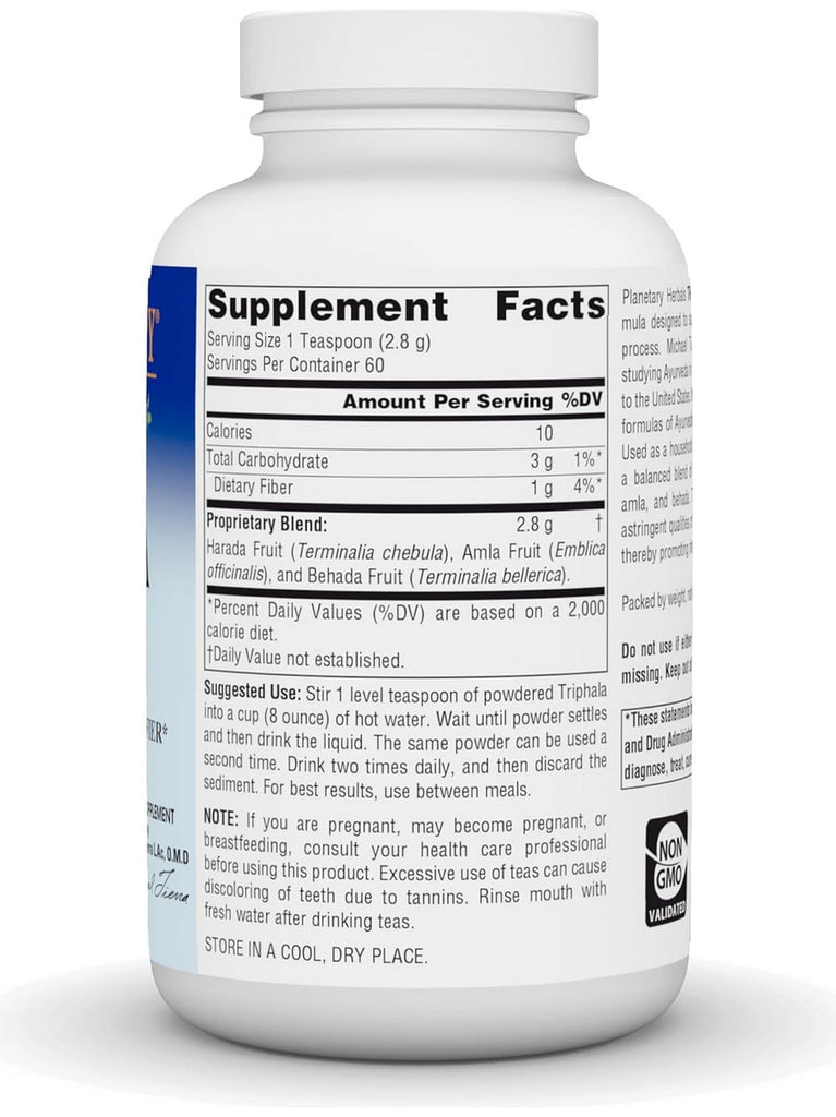 Triphala is a potent yet gentle three-fruit herbal complex that uniquely supports GI (gastrointestinal) tract wellness. Supported by emerging science and traditional use, Triphala cleanses, tonifies, and revitalizes the tissues of the entire GI tract, setting the stage for better digestion and regular elimination to help you feel better. Triphala has been the cornerstone herbal formula for GI wellness in the East for more than 1,000 years.