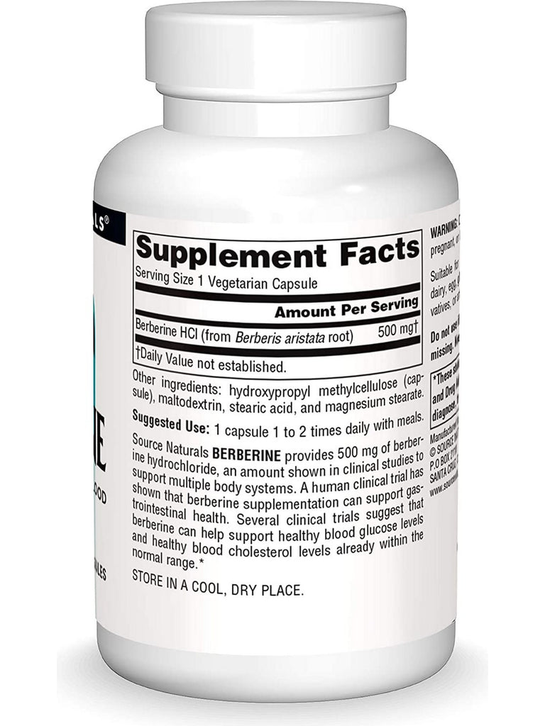 Source Naturals Berberine provides 500 mg of berberine hydrochloride, an amount shown in clinical studies to support multiple body systems. A human clinical trial has shown that berberine supplementation can support gastrointestinal health. Several clinical trials suggest that berberine can help support healthy blood glucose levels and healthy blood cholesterol levels already within the normal range.