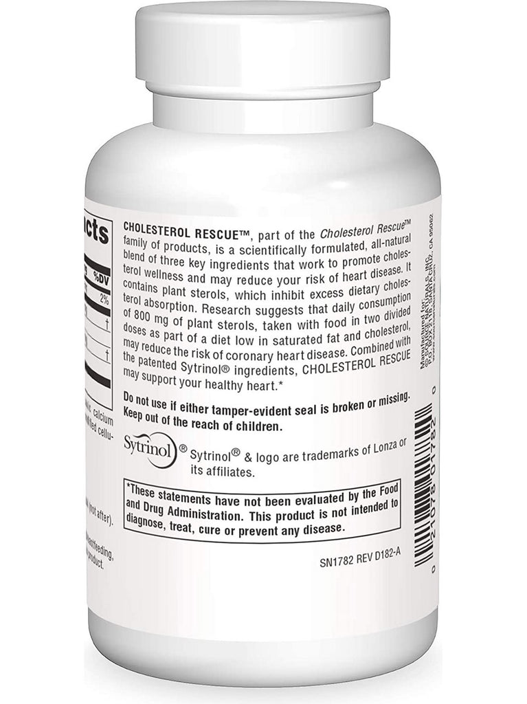 Cholesterol Rescue™, part of the Cholesterol Rescue™ family of products, is a scientifically formulated, all-natural blend of three key ingredients that work to promote cholesterol wellness and may reduce your risk of heart disease. It contains plant sterols, which inhibit excess dietary cholesterol absorption. Research suggests that daily consumption of 800 mg of plant sterols, taken with food in two divided doses as part of a diet low in saturated fat and cholesterol, may reduce the risk of coronary heart disease. Combined with the patented Sytrinol® ingredients, Cholesterol Rescue may support your healthy heart.