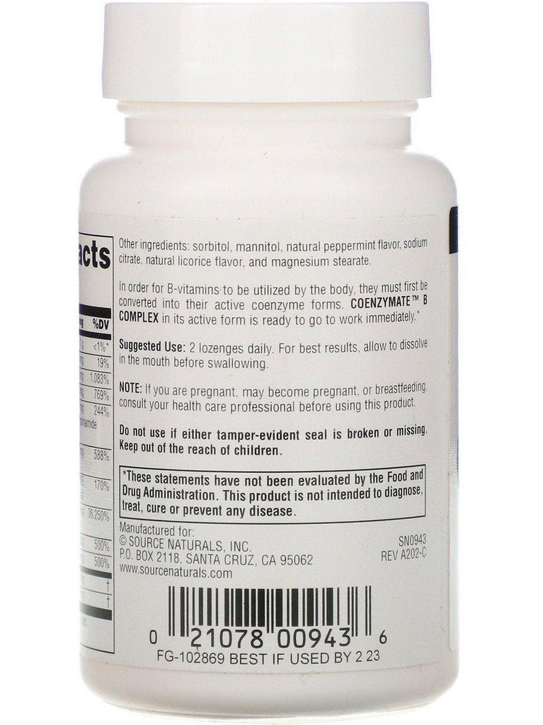 Source Naturals, Coenzymate™ B Complex, Peppermint, 30 lozenges
