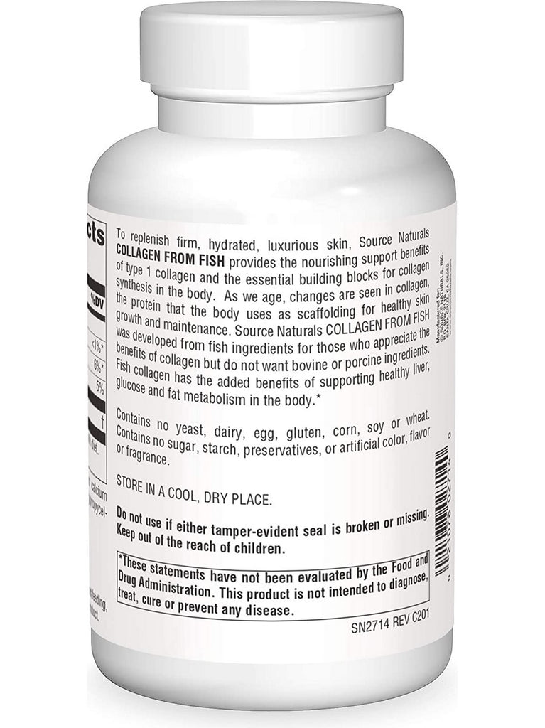 To replenish firm, hydrated, luxurious skin, Source Naturals Collagen From Fish provides the nourishing support benefits of type 1 collagen and the essential building blocks for collagen synthesis in the body. As we age, changes are seen in collagen, the protein that the body uses as scaffolding for healthy skin growth and maintenance. Source Naturals Collagen From Fish was developed from fish ingredients for those who appreciate the benefits of collagen but do not want bovine or porcine ingredients. Fish collagen has the added benefits of supporting healthy liver, glucose and fat metabolism in the body.