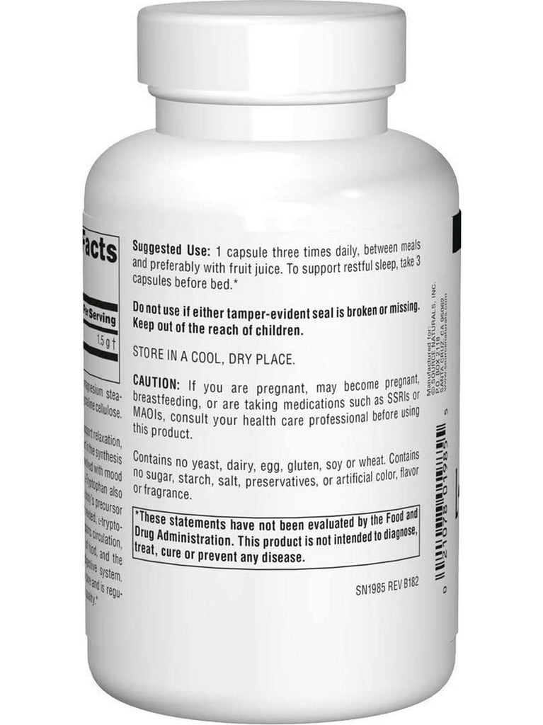 The essential amino acid l-tryptophan helps support relaxation, restful sleep, and positive mood. It plays a part in the synthesis of both melatonin and serotonin, hormones involved with mood and stress response and sleep/wake cycles. l-Tryptophan also supports immune functions because it is the body’s precursor to the kynurenines that regulate immunity. If needed, l-tryptophan converts to niacin in the body, which supports circulation, a healthy nervous system, the metabolism of food, and the production of hydrochloric acid for the digestive system. Source Naturals l-TRYPTOPHAN is extremely pure and is regularly tested to ensure the highest standards of quality.
