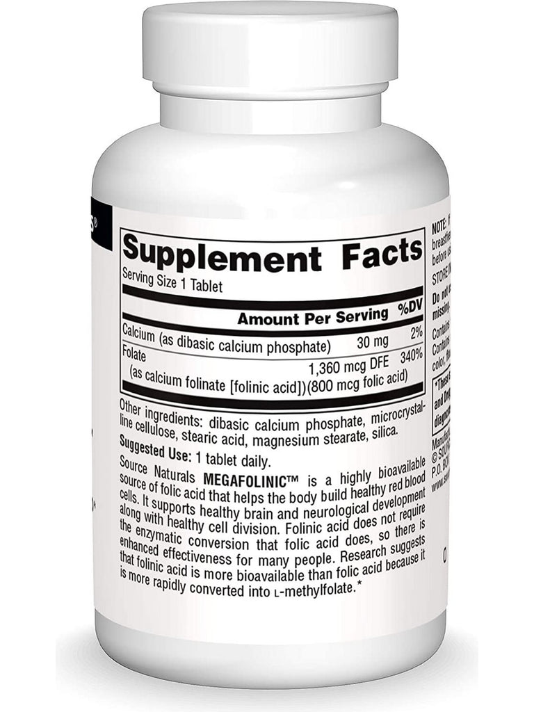 Source Naturals MegaFolinic™ is a highly bioavailable source of folic acid that helps the body build healthy red blood cells. It supports healthy brain and neurological development along with healthy cell division. Folinic acid does not require the enzymatic conversion that folic acid does so there is enhanced effectiveness for many people. Research suggests that folinic acid is more bioavailable than folic acid because it is more rapidly converted into L-methylfolate.
