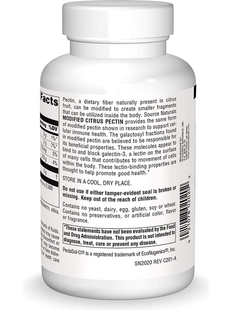 Pectin, a dietary fiber naturally present in citrus fruit, can be modified to create smaller fragments that can be utilized inside the body. Source Naturals Modified Citrus Pectin provides the same form of modified pectin shown in research to support cellular immune health. The galactosyl fractions found in modified pectin are believed to be responsible for its beneficial properties. These molecules appear to bind to and block galectin-3, a lectin on the surface of many cells that contributes to movement of cells within the body. These lectin-binding properties are thought to help promote good health.