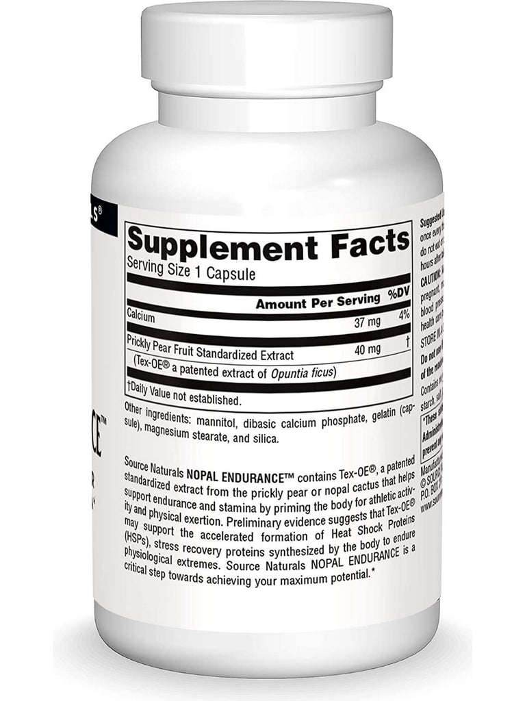 Source Naturals Nopal Endurance™ contains Tex-OE®, a patented standardized extract from the prickly pear or nopal cactus that helps support endurance and stamina by priming the body for athletic activity and physical exertion. Preliminary evidence suggests that Tex-OE® may support the accelerated formation of Heat Shock Proteins (HSPs), stress recovery proteins synthesized by the body to endure physiological extremes. Source Naturals Nopal Endurance is a critical step towards achieving your maximum potential.