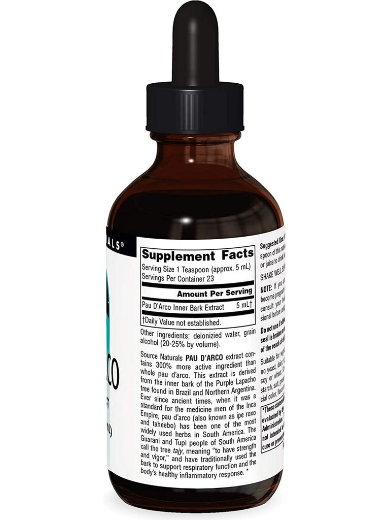 Source Naturals PAU D’ARCO is derived from the inner bark of the Purple Lapacho tree found in Brazil and Northern Argentina. Ever since ancient times, when it was a standard for the medicine men of the Inca Empire, pau d’arco (also known as ipe roxo and taheebo) has been one of the most widely used herbs in South America. The Guarani and Tupi people of South America call the tree tajy, meaning “to have strength and vigor,” and have traditionally used the bark to support respiratory function and the body’s healthy inflammatory response.