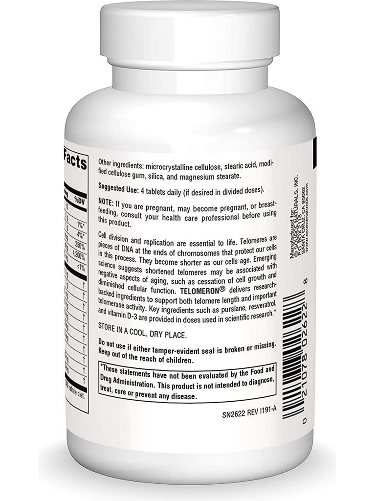 Cell division and replication are essential to life. Telomeres are pieces of DNA at the ends of chromosomes that protect our cells in this process. They become shorter as our cells age. Emerging science suggests shortened telomeres may be associated with negative aspects of aging, such as cessation of cell growth and diminished cellular function. Telomeron® delivers research-backed ingredients to support both telomere length and important telomerase activity. Key ingredients such as purslane, resveratrol, and vitamin D-3 are provided in doses used in scientific research.