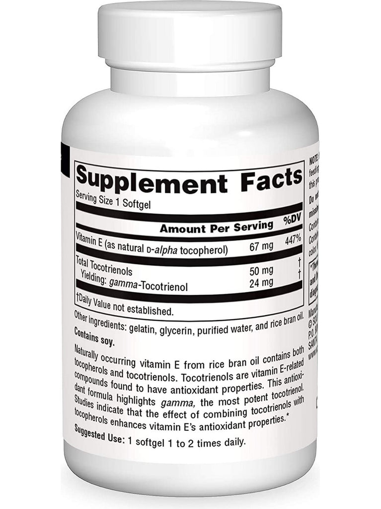 Naturally occurring vitamin E from rice bran oil contains both tocopherols and tocotrienols. Tocotrienols are vitamin E-related compounds found to have antioxidant properties. This antioxidant formula highlights gamma, the most potent tocotrienol. Studies indicate that the effect of combining tocotienols with tocopherols enhances vitamin E's antioxidant properties.