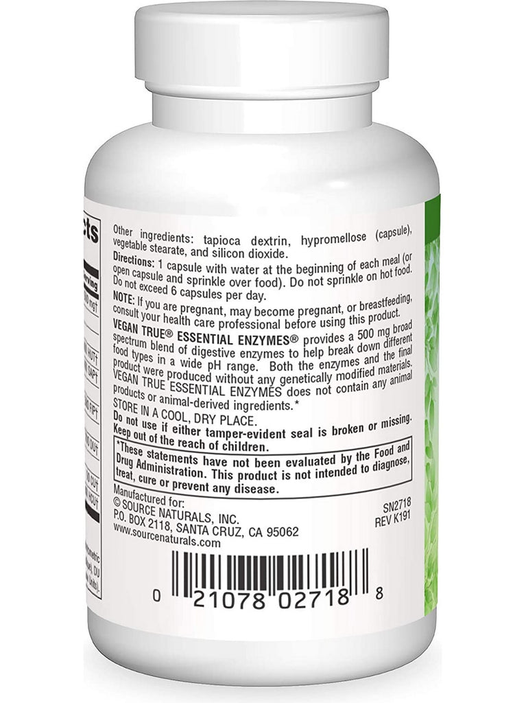 Source Naturals, Vegan True® Non-GMO Essential Enzymes® 500 mg, 45 vegetarian capsules