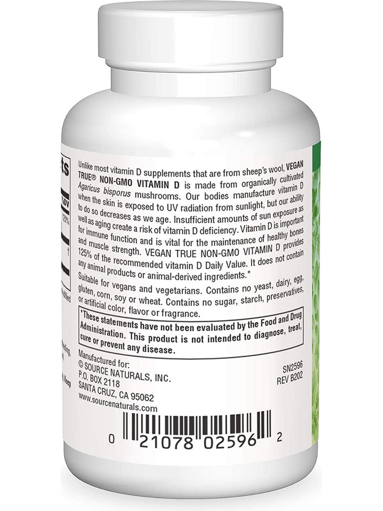 Source Naturals, Vegan True® Non-GMO Vitamin D 1000 IU, 60 tablets