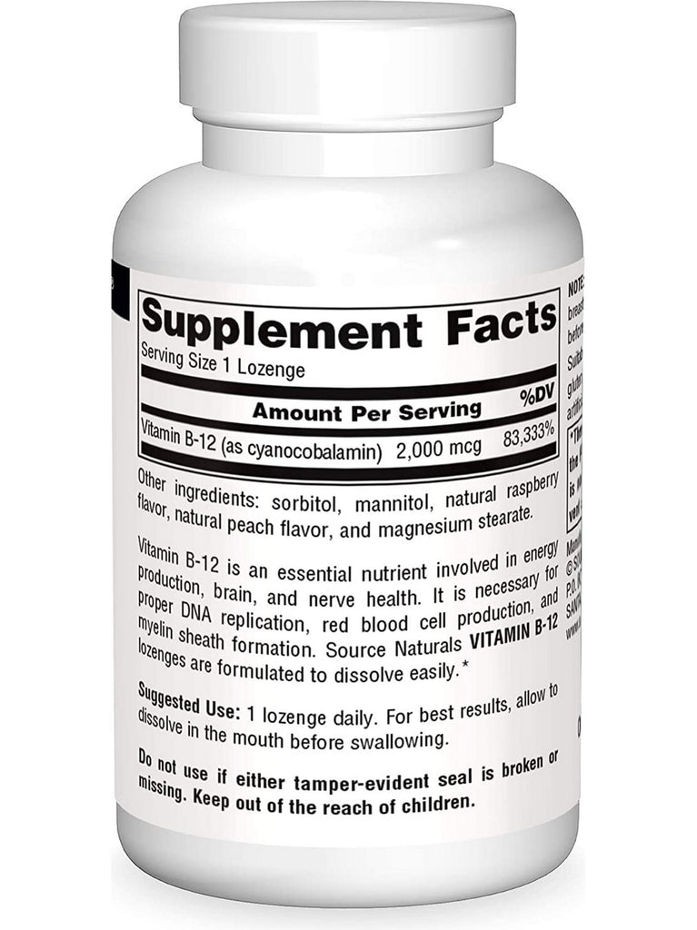 Source Naturals, Vitamin B-12, 2000 mcg, 50 lozenges