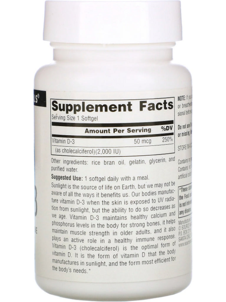 Source Naturals, Vitamin D-3 2000 IU, 100 softgels
