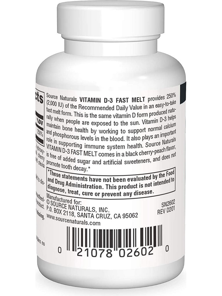 Source Naturals, Vitamin D-3 2000 IU Black Cherry-Peach Fast Melt™, 60 tablets