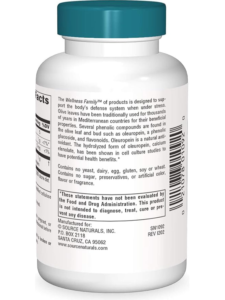 Source Naturals, Wellness Olive Leaf Extract, 500mg, 60 ct