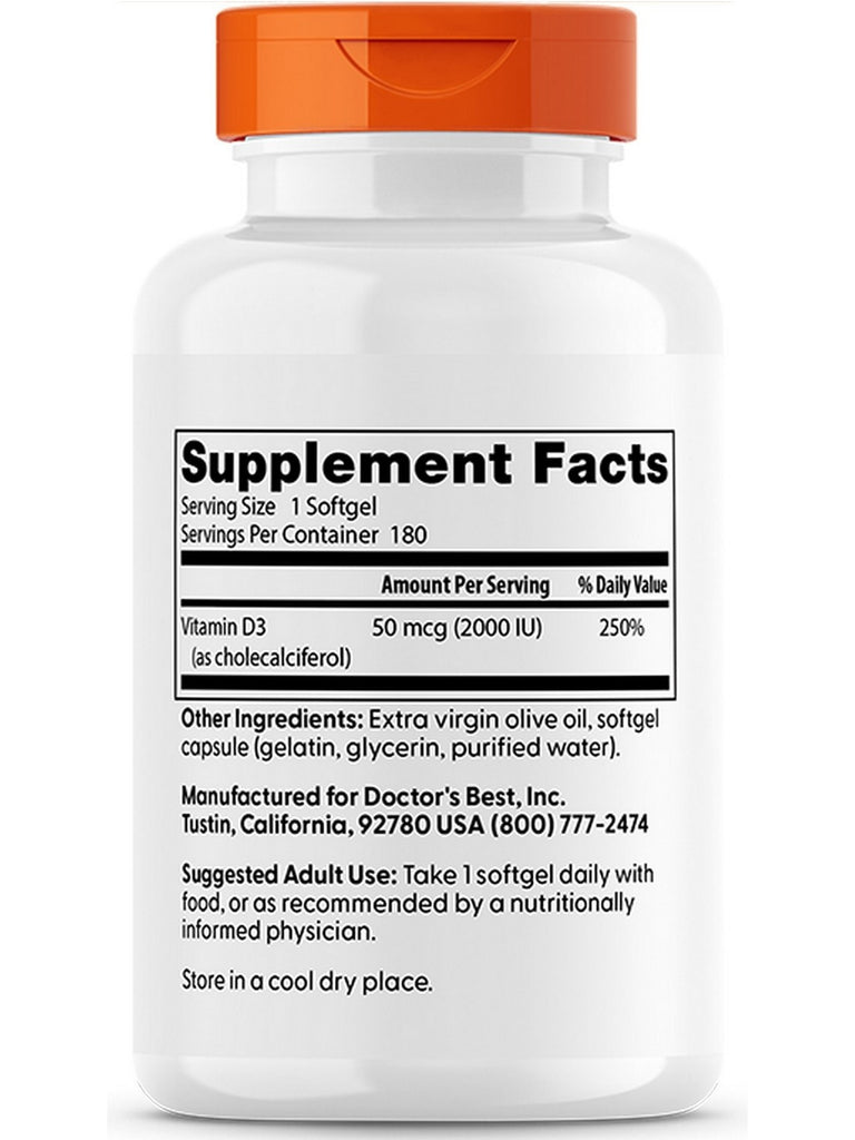 Doctor's Best, Vitamin D3, 2,000 IU, 180 Softgels