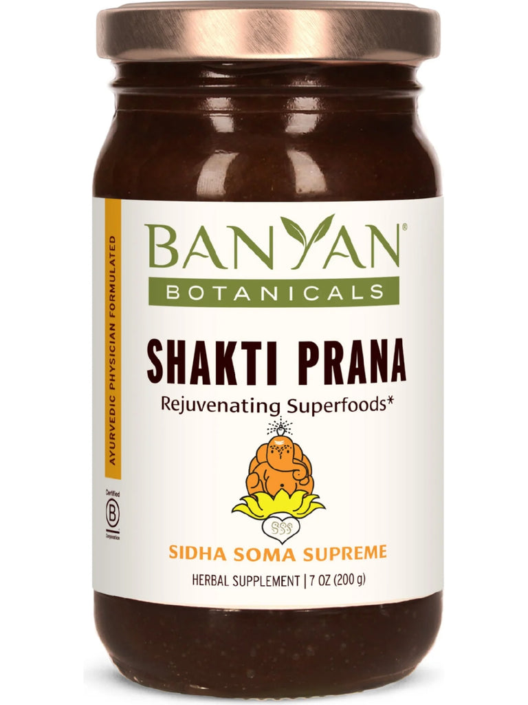 Formulated by Ayurvedic physician Vasant Lad, BAM&S, MASc, Shakti Prana is a rejuvenating blend of ghee, honey, and herbal superfoods, including ashwagandha and shatavari. It features all six tastes and helps to balance all three doshas.