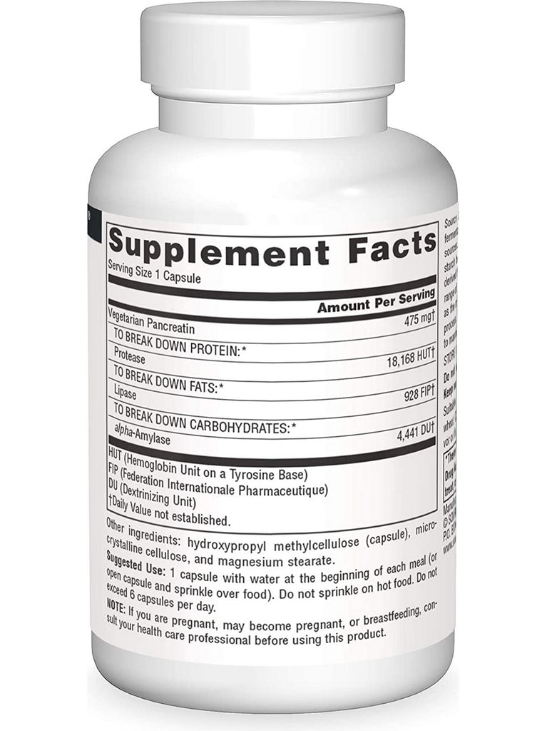 Source Naturals, Vegetarian Pancreatin 475 mg, 60 vegetarian capsules