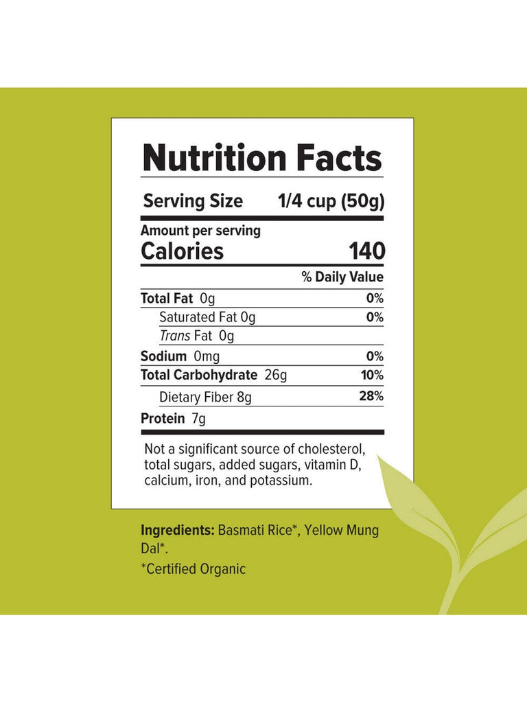 - Balanced ratio of 2:1 basmati rice and yellow mung dal