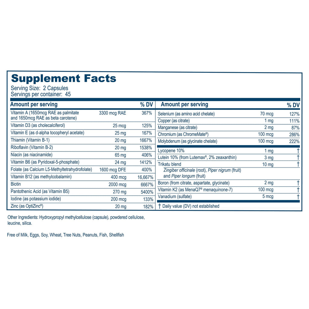 Ayush Multi is composed of high quality, food-based nutrients that do not compete with one another, thus allowing for optimal absorption. Each ingredient is micro-coated, which prevents oxidation and provides a sustained release of the vitamins and minerals throughout the day. But what most sets Ayush Multi apart from other multivitamins on the market is the addition of Trikatu, a blend of Ayurvedic herbs, along with a higher concentration of pure bioflavonoids, such as hesperidin and hesperidin methyl chalcone, which support the body's ability to assimilate all the nutrients more efficiently. Ayush Multi's slow-release action allows full absorption of all nutrients. Ayush Multi includes B vitamins for occasional stress adaptation and healthy heart function; vitamin D for immune system support; vitamin E, vitamin K, beta-carotene, and selenium for their anti-oxidant properties, which supports the health of cellular membranes; and iodine for immune system support. Just two caps deliver or exceed the RDI values of these nutrients, making our multivitamin an economical and convenient way to deliver maximum nutritional value.
