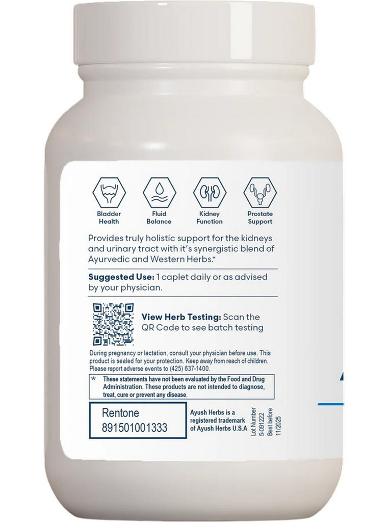 Rentone is a formula for kidney and urinary support with a unique combination of Eastern and Western herbs in addition to other nutrients that support the eliminative system. Didymocarpus pedicellata is an Ayurvedic herb also known as pathar phori. In Sanskrit, the name means "that which breaks stones." Saxifraga ligulata has a similar meaning, "the plant which breaks rocks in order to grow". Ocimum sanctum (holy basil) is used here for its immune system supporting and diuretic actions. Shilajit is an asphaltum (mineral pitch) obtained in the Himalayan region of India and is considered a rasayana (adaptogen). Shilajit contains at least 85 minerals in ionic form and has been used traditionally for centuries for genitourinary and immune support, as well as for its aphrodisiac and purifying properties. Arctostaphylos uva-ursi is a European herb, the leaves of which contain 10% of the most active principles of arbutin, which splits into glucose and hydroquinone in the kidneys. Mimosa pudica (lajja, or lajwanti) is traditionally used for urinary support. Dolichos biflorus is also known as Kulatha beans, the seeds of which are astringent, diuretic, and tonifying, and have been used traditionally in support of renal and urinary bladder. Cyperus rotundus is a dried tuberous root known as soucher, which is known to have diuretic, diaphoretic, and astringent properties. It is traditionally used for stomach and bowel support. Crataeva religiosa, also known as varuna (three-leaved caper), contains saponins and tannins in its bark. In Ayurveda, varuna is used to support the muscles of the bladder. It also helps support a healthy inflammatory response within a normal range of the genitourinary system and has a diuretic effect. Achyranthus aspera (apamarg) is traditionally used as a diuretic and to normalize pH.