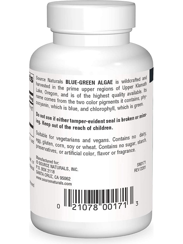 Source Naturals Blue-Green Algae is wildcrafted and harvested in the prime upper regions of Upper Klamath Lake, Oregon, and is of the highest quality available. Its name comes from the two color pigments it contains: phycocyanin, which is blue, and chlorophyll, which is green.
