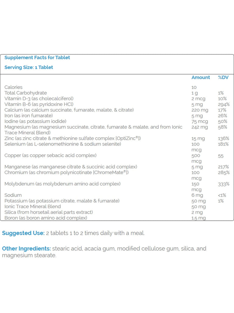 Life Minerals™ is a comprehensive multi-mineral formula. The minerals are bound to organic compounds of the Krebs cycle (cellular energy production system) and other bioactive nutrients that are the transport forms for each mineral.