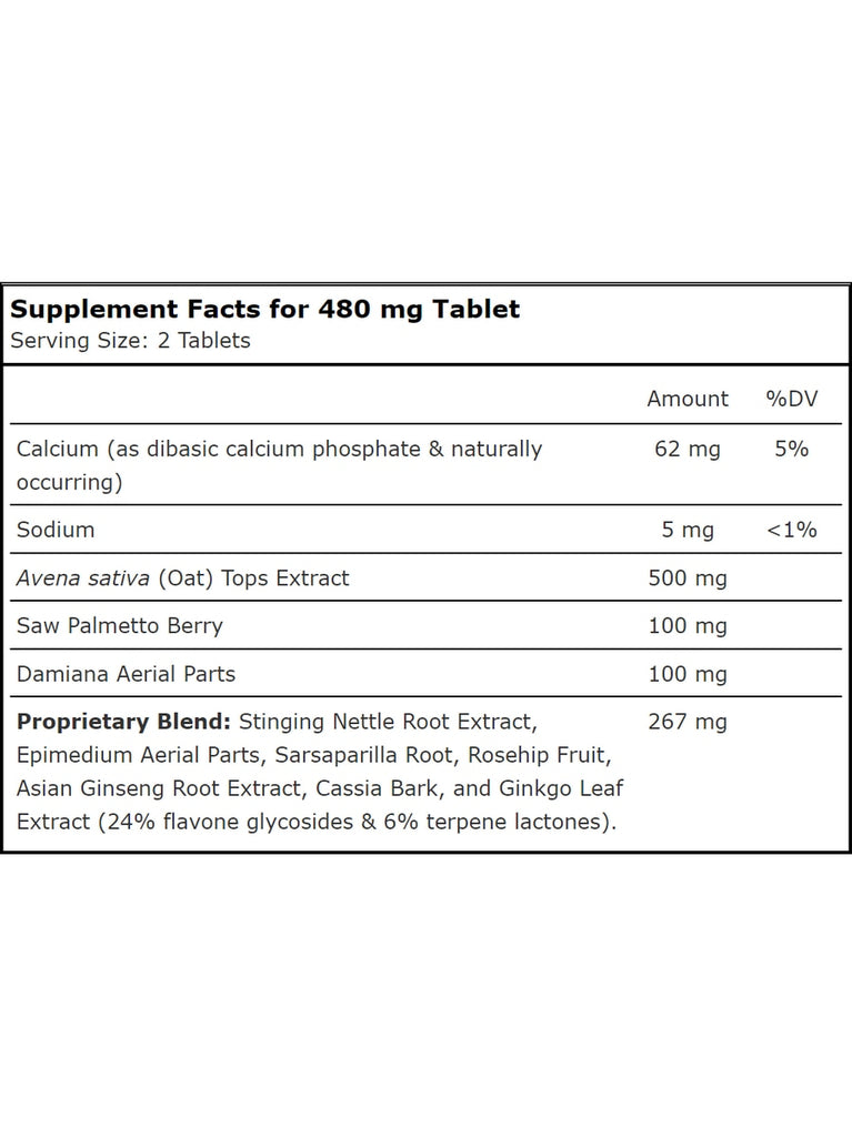 Planetary Herbals Avena Sativa Oat Complex for Men 480 mg. is botanical support for the prostate. Throughout the centuries, oats (Avena sativa) have been considered one of the most nourishing tonics for general weakness and men's health. Planetary Herbals Avena Sativa Oat Complex for Men combines highly concentrated oat and nettle root extracts and whole saw palmetto berries with some of the most respected Western and Chinese tonics for men, including damiana and ginseng, to support a healthy prostate. Lifestyle Recommendations: Eat foods that are high in the mineral zinc such as pumpkin or sunflower seeds, exercise regularly, and avoid foods high in cholesterol.