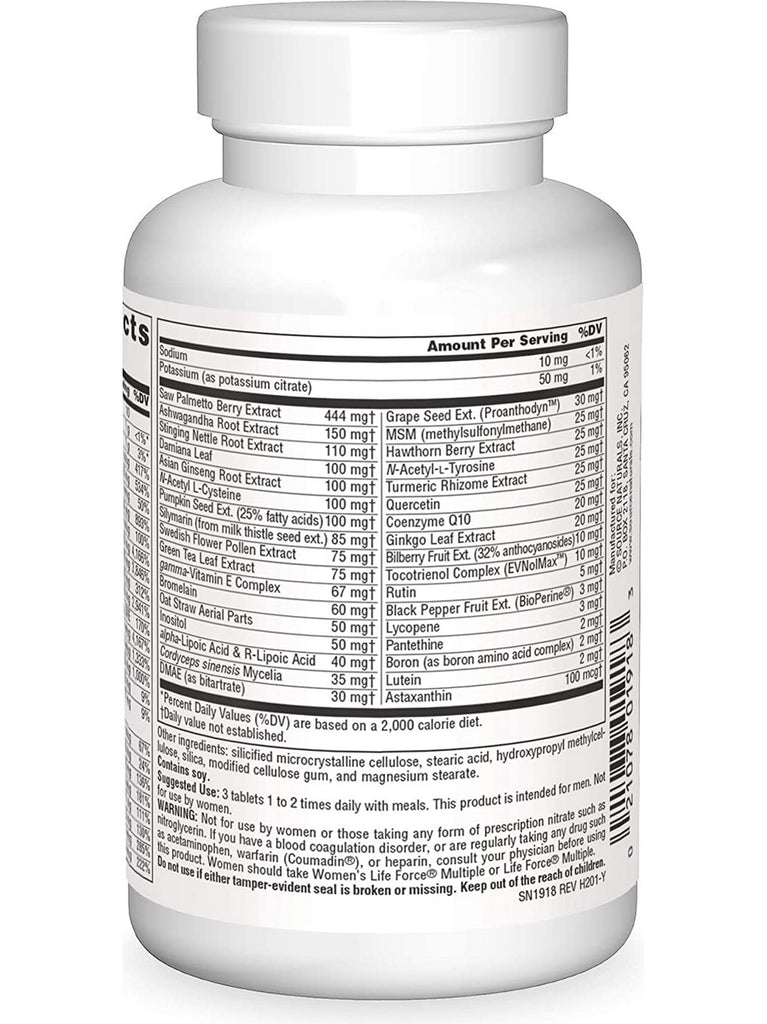 Source Naturals Men's Life Force® Multiple is a scientifically advanced Bio-Aligned Formula®, based on the award-winning Life Force® Multiple. Additional ingredients address men's specific health concerns, including prostate function, reproductive health, hormonal regulation, libido, and more. Designed to meet the nutritional needs of men of all ages, Men's Life Force delivers deep cellular energy to your key body systems. When these systems are aligned, you experience enhanced vitality, strength, and performance.