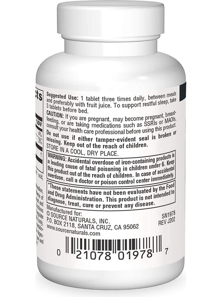 1 tablet three times daily, between meals and preferably with fruit juice. To support restful sleep, take 3 tablets before bed.