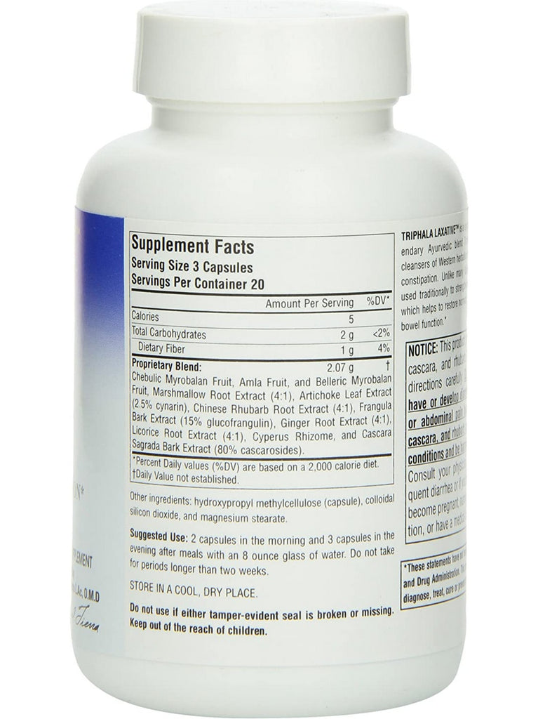 Triphala Laxative™ is a unique combination of the legendary Ayurvedic blend Triphala and key intestinal cleansers of Western herbalism for relief from occasional constipation. Unlike many laxatives, Triphala has been used traditionally to strengthen and tone as it cleanses, which helps to restore normalcy, health and efficiency to bowel function.