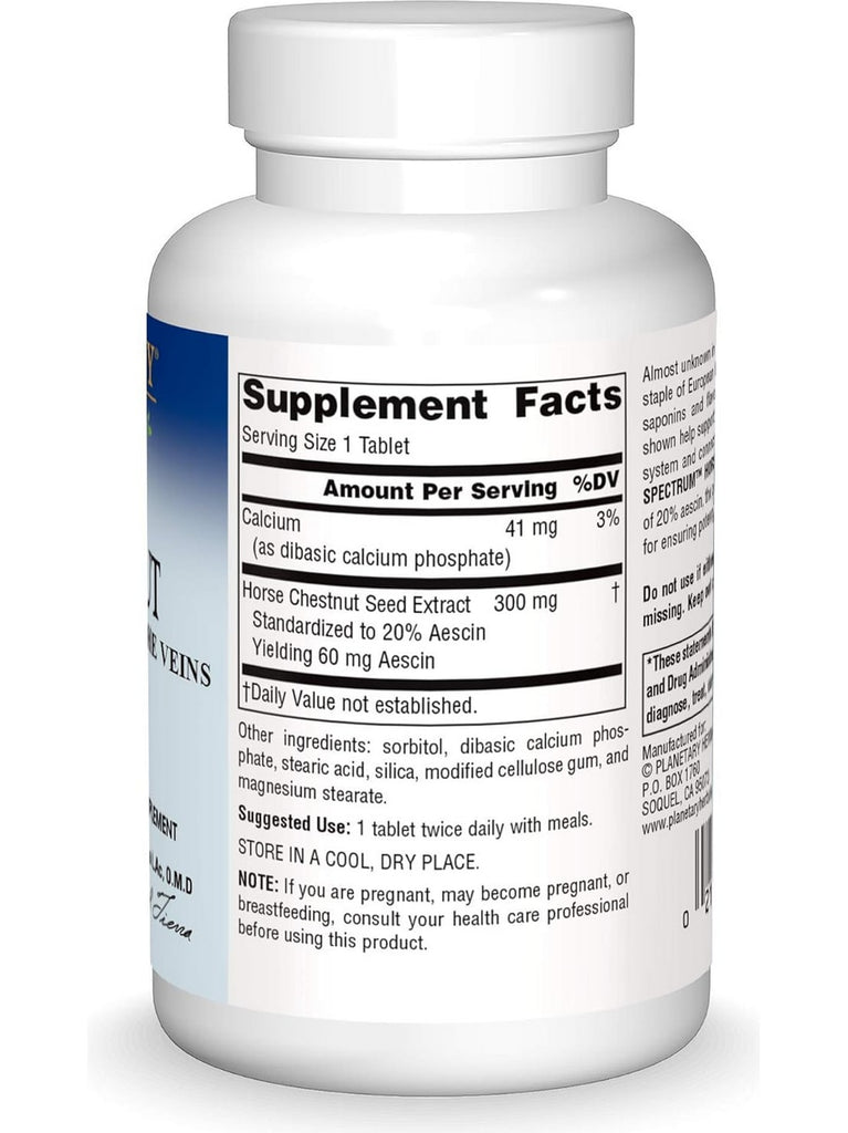 Almost unknown in America, horse chestnut extract is a staple of European herbalism. Horse chestnut is rich in saponins and flavones, which modern research has shown help support the integrity of the vascular system and connective tissue. Planetary Herbals Full Spectrum Horse Chestnut delivers a minimum of 20% aescin, the primary constituent in horse chestnut for assuring potency.