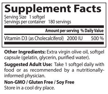 Doctor's Best, Vitamin D3, 2,000 IU, 180 Softgels