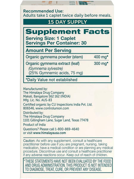 Himalaya Herbal Healthcare, Organic Gymnema, 30 Caplets