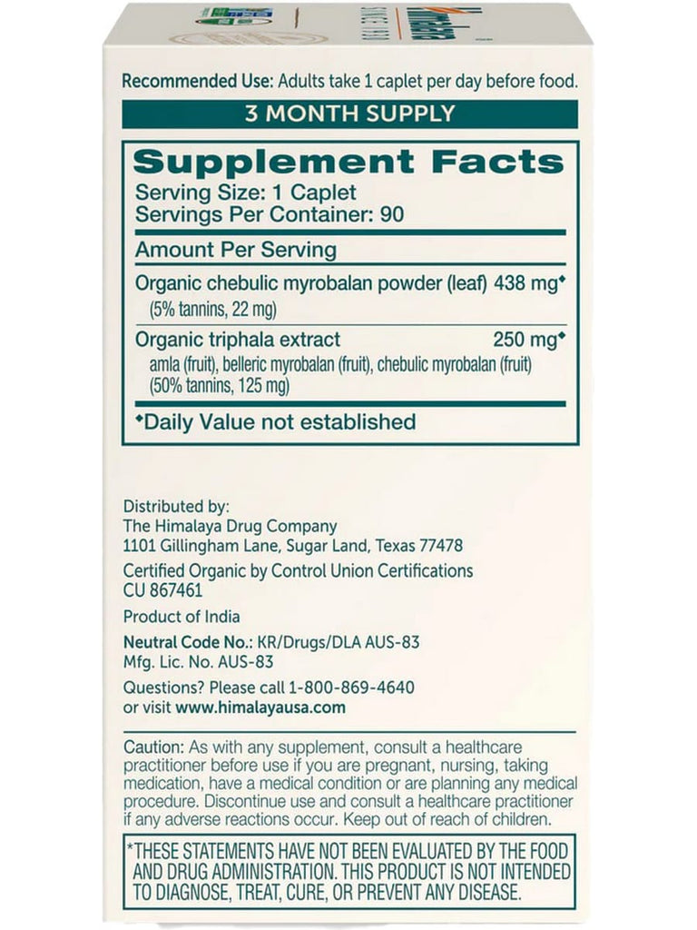 - Himalaya Organic Triphala helps with occasional bloating, helps you cleanse and provides digestive regularity.