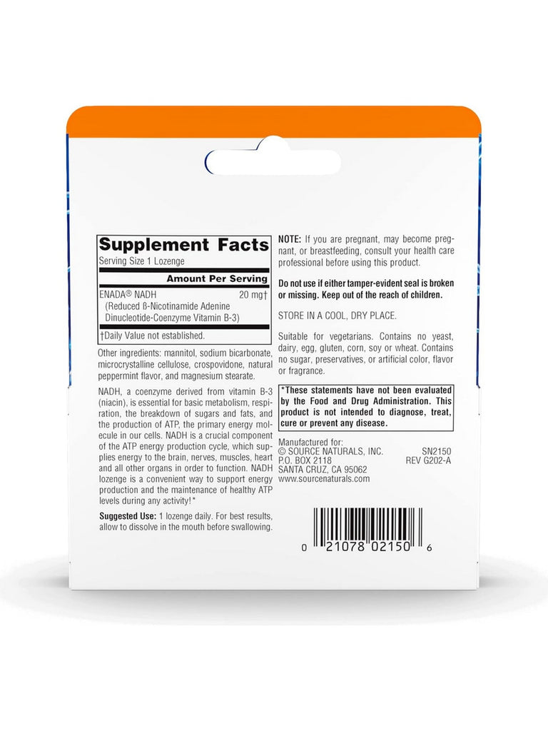 NADH, a natural coenzyme derived from vitamin B-3 (niacin), is essential for basic metabolism, respiration, the breakdown of sugars and fats, and the production of ATP, the primary energy molecule in our cells. NADH supplies ATP energy to the brain, nerves, muscles, heart and all other organs, in order to function. NADH sublingual is great for traveling, jet lag, studying, workouts, athletic performance, or whenever a natural boost of energy is needed.