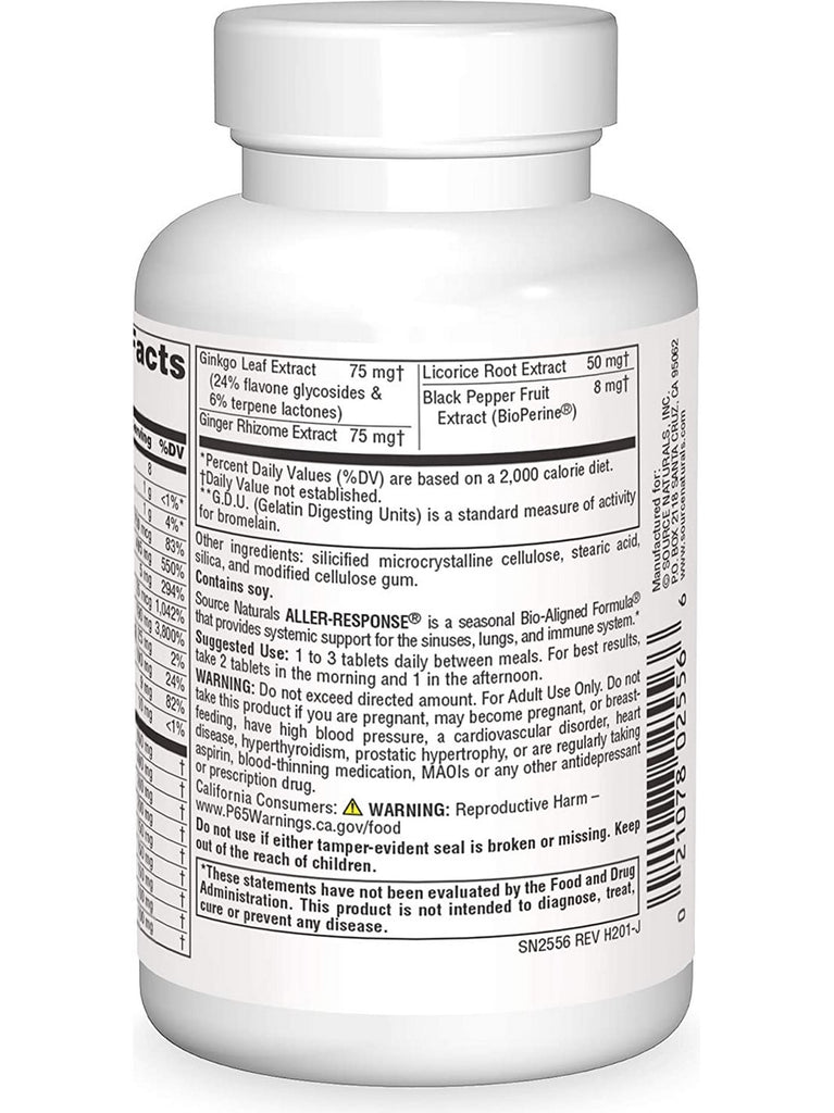 Source Naturals ALLER-RESPONSE® is a seasonal Bio-Aligned Formula® that provides systemic support for the sinuses, lungs, and immune system.