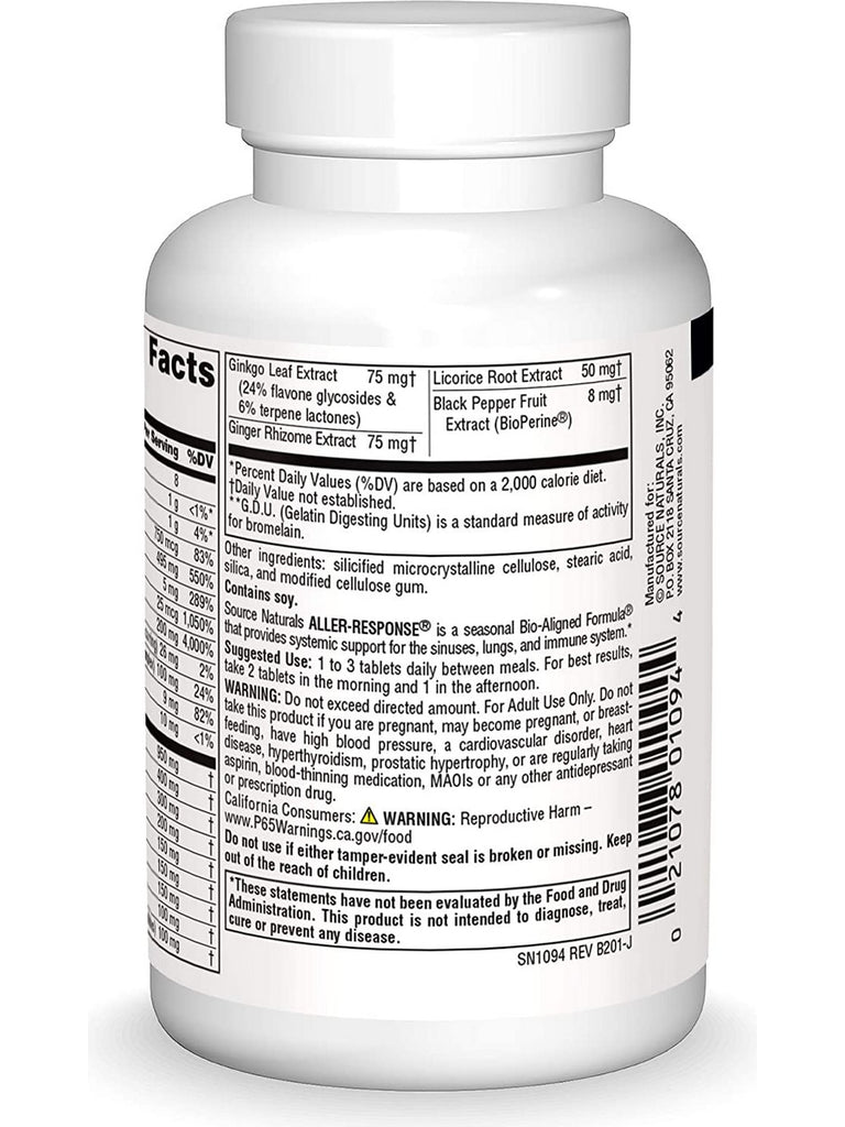 Source Naturals ALLER-RESPONSE® is a seasonal Bio-Aligned Formula® that provides systemic support for the sinuses, lungs, and immune system.