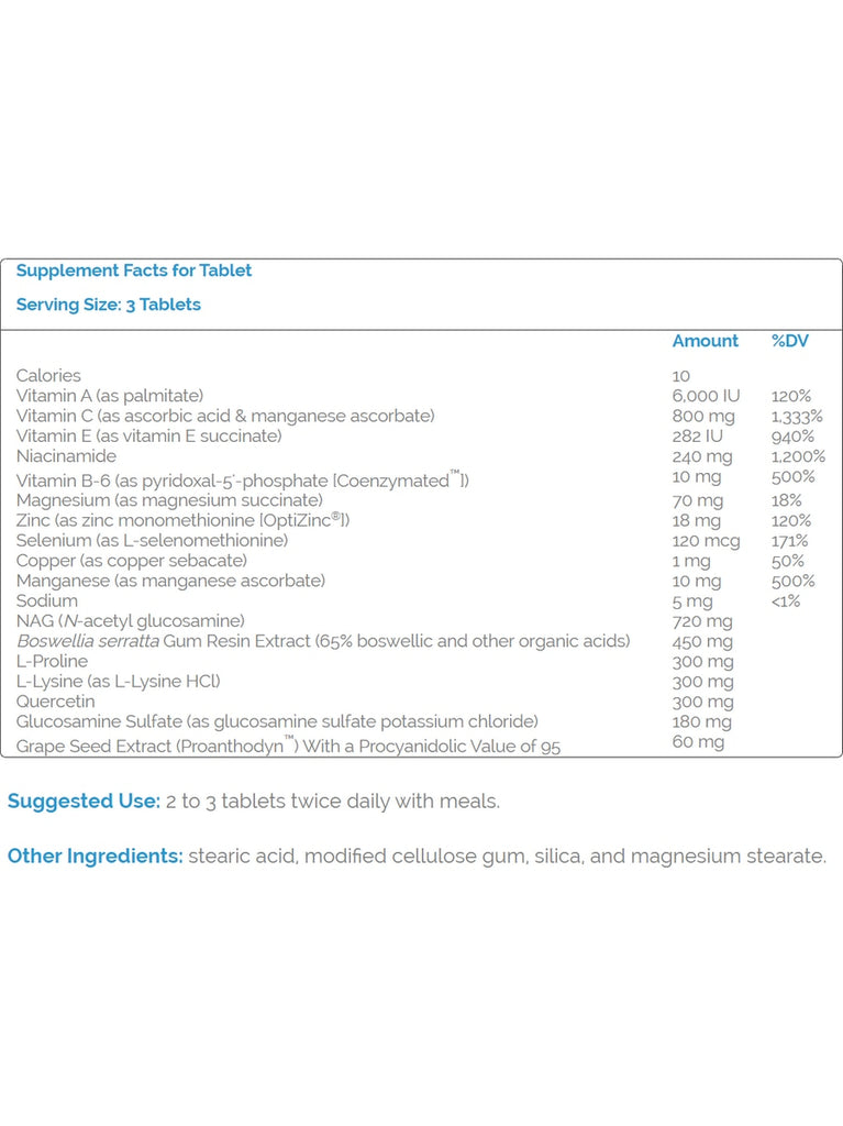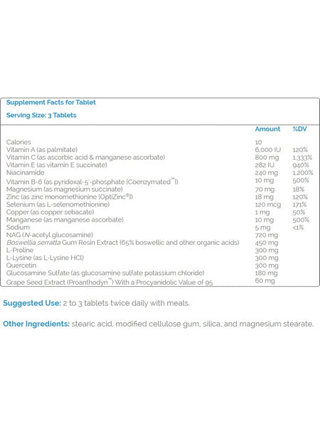 GlucosaMend™ is a comprehensive natural product available for tissue repair and joint flexibility. It is the first product to incorporate both N-acetyl glucosamine and glucosamine sulfate, two key amino sugars which are critical components of virtually all connective tissue and lubricating fluids in the body. It also contains well-known soothing herbal extracts such as boswellia, grape seed extract, and quercetin. Antioxidant nutrients such as vitamin E and selenium are needed for protection against free radicals and for the normal growth and repair of body tissues. GlucosaMend can be used by seniors, athletes, or anyone wanting to support normal tissue repair function.
