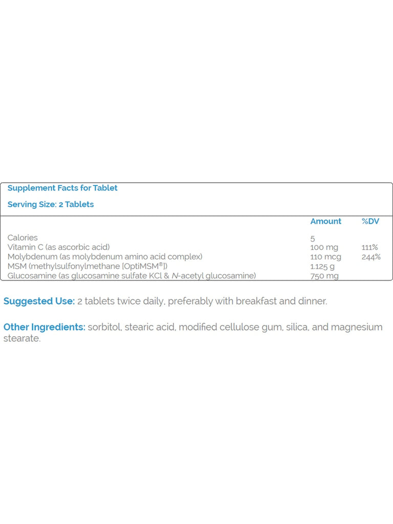 Source Naturals Joint Response™ provides three of the most important building blocks for joints and connective tissues: MSM (dietary sulfur), glucosamine, and vitamin C. These nutrients help to lubricate and ease joint movement. Molybdenum is added to this formula to aid in preventing molybdenum loss in the body due to increased organic sulfur intake.
