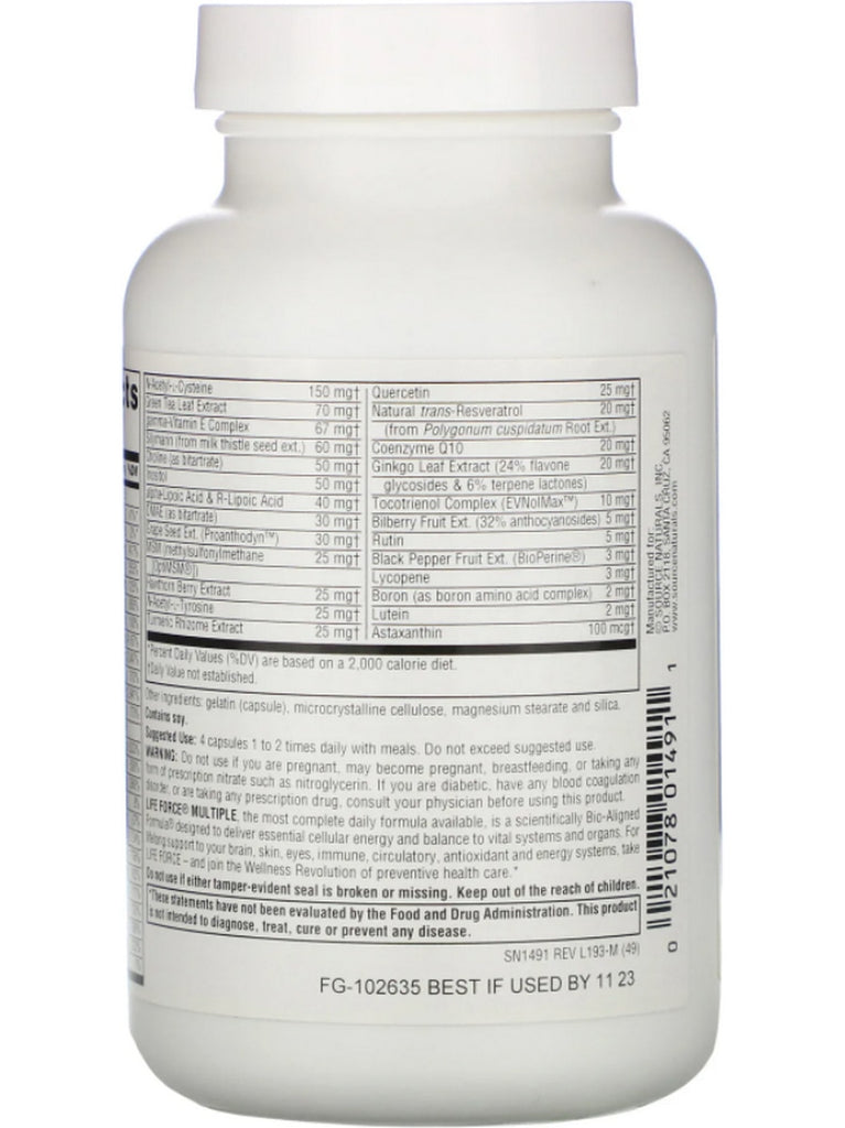 Life Force® Multiple, the most complete daily formula available, is a scientifically Bio-Aligned Formula® designed to deliver essential cellular energy and balance to vital systems and organs. For lifelong support to your brain, skin, eyes, immune, circulatory, antioxidant and energy systems, take Life Force—and join the Wellness Revolution of preventive health care.