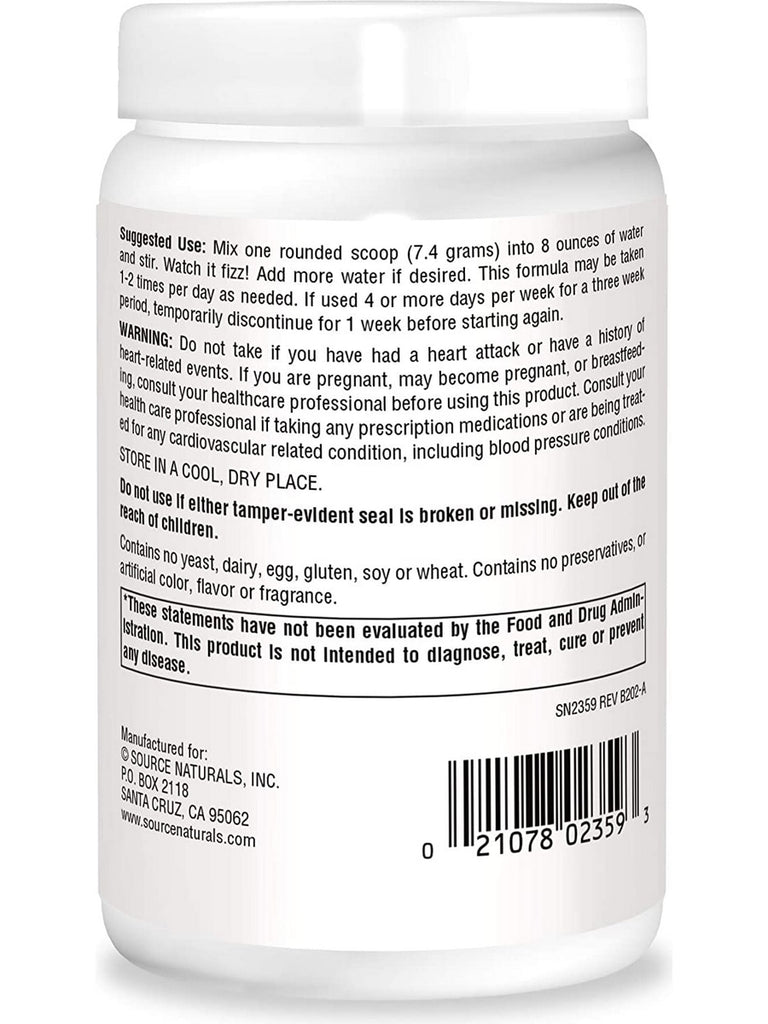 Mix one rounded scoop (7.4 grams) into 8 ounces of water and stir. Watch it fizz! Add more water if desired. This formula may be taken 1-2 times per day as needed. If used 4 or more days per week for a three week period, temporarily discontinue for 1 week before starting again.