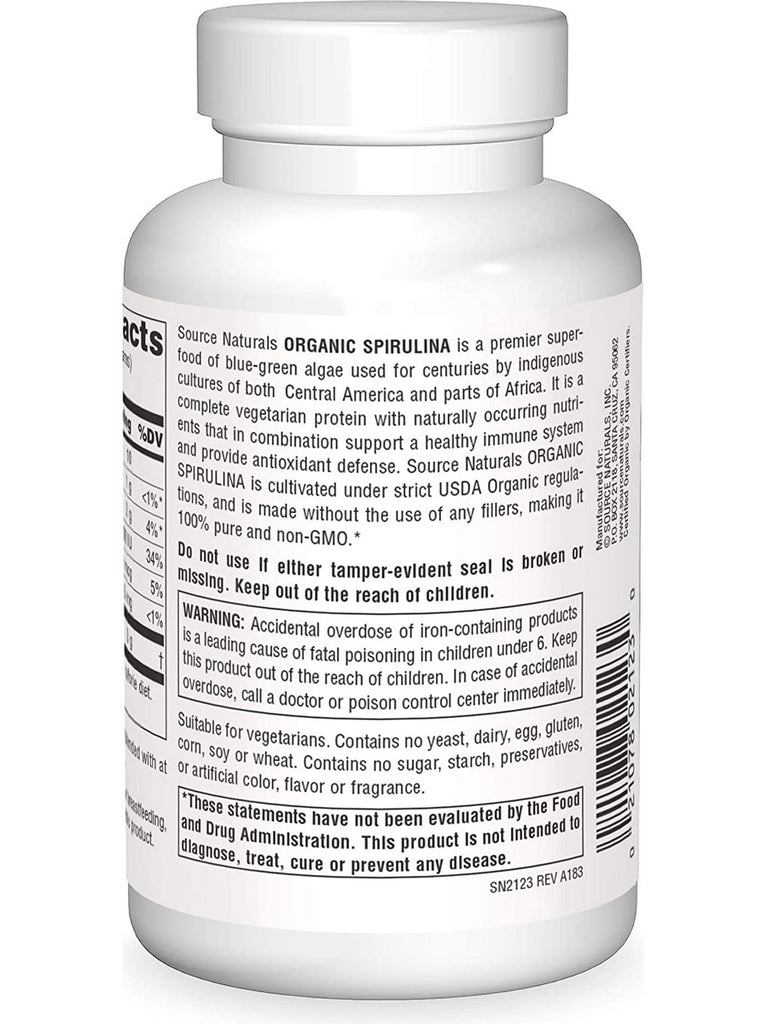 Source Naturals Organic Spirulina is a premier superfood of blue-green algae used for centuries by indigenous cultures of both Central America and parts of Africa. It is a complete vegetarian protein with naturally occurring nutrients that in combination support a healthy immune system and provide antioxidant defense. Source Naturals Organic Spirulina is cultivated under strict USDA Organic regulations, and is made without the use of any fillers, making it 100% pure and non-GMO.